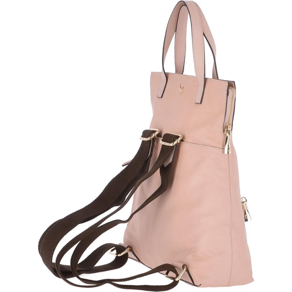 Part of Ashwoods, two in one backpack, handbag range, crafted from full grain leather. Giving you the option of using this bag either as a handbag or backpack. Coloured in blush, and beautifully hand rubbed with traditional artisan skills and modern methods in order to preserve its natural softness The attention to detail, chic matching leather handles make this ancestry piece a truly beautiful sought after item, a beautiful collector’s piece that will look better with age. A mini backpack which doubles up as a handbag with pockets for all your handy essentials and tech gadgets.