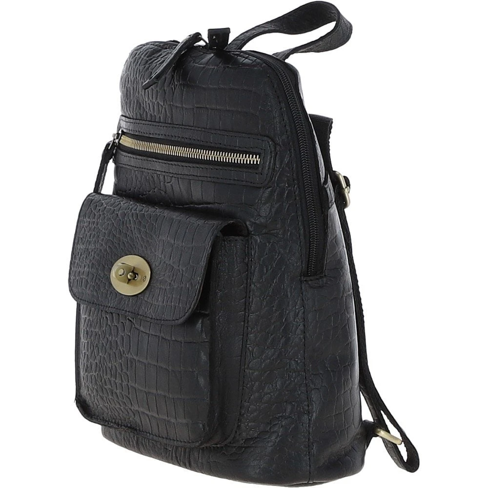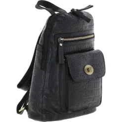 Ashwood Croc Print Leather Mini Backpack Black: L-75