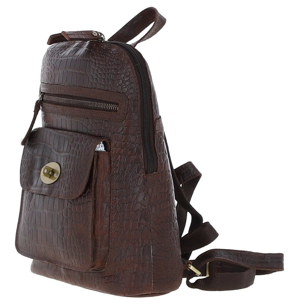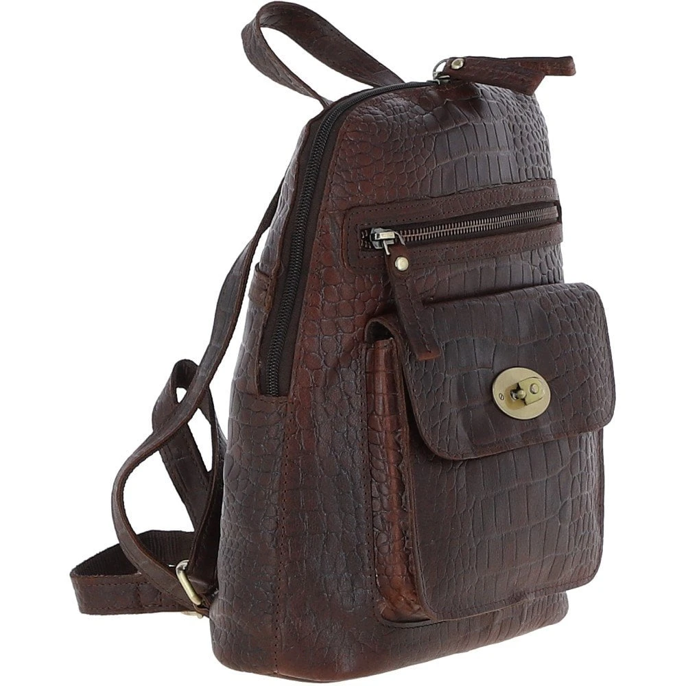 Ashwood Croc Print Leather Mini Backpack Brandy: L-75