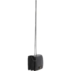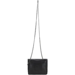 Dipped Leather Cross Body Bag With Chain Strap Black: R-11