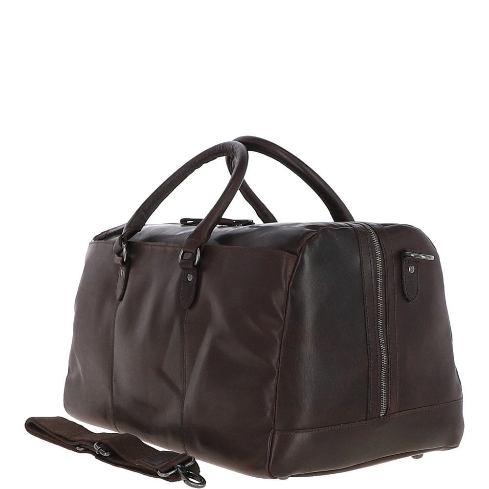Large Waxy Leather Holdall Brown: W-76