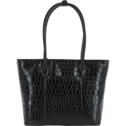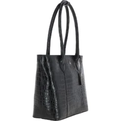 Ashwood Leather Crocodile Print Shopper Bag Black: C-56