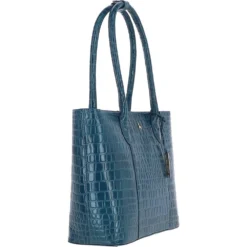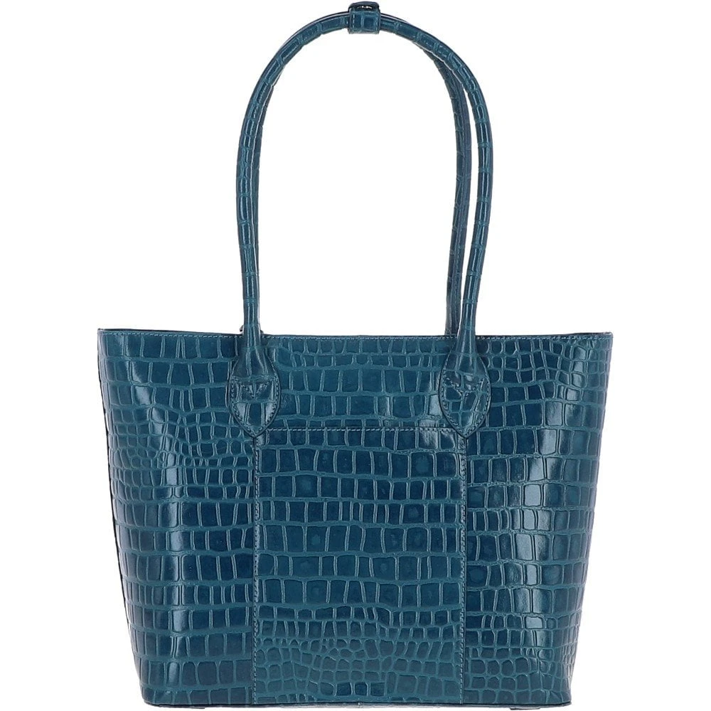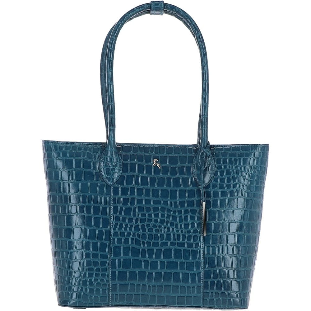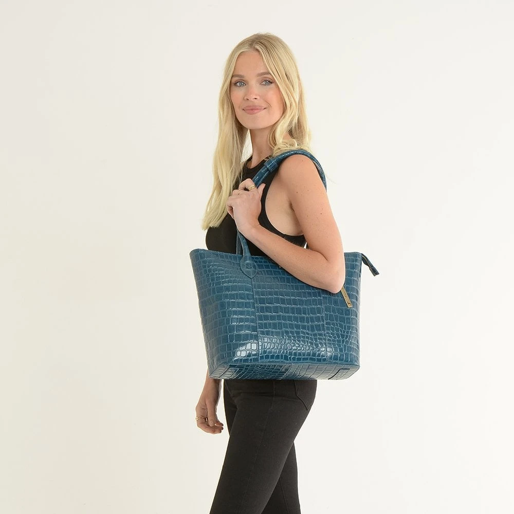 Ashwood Leather Crocodile Print Shopper Bag Teal: C-56