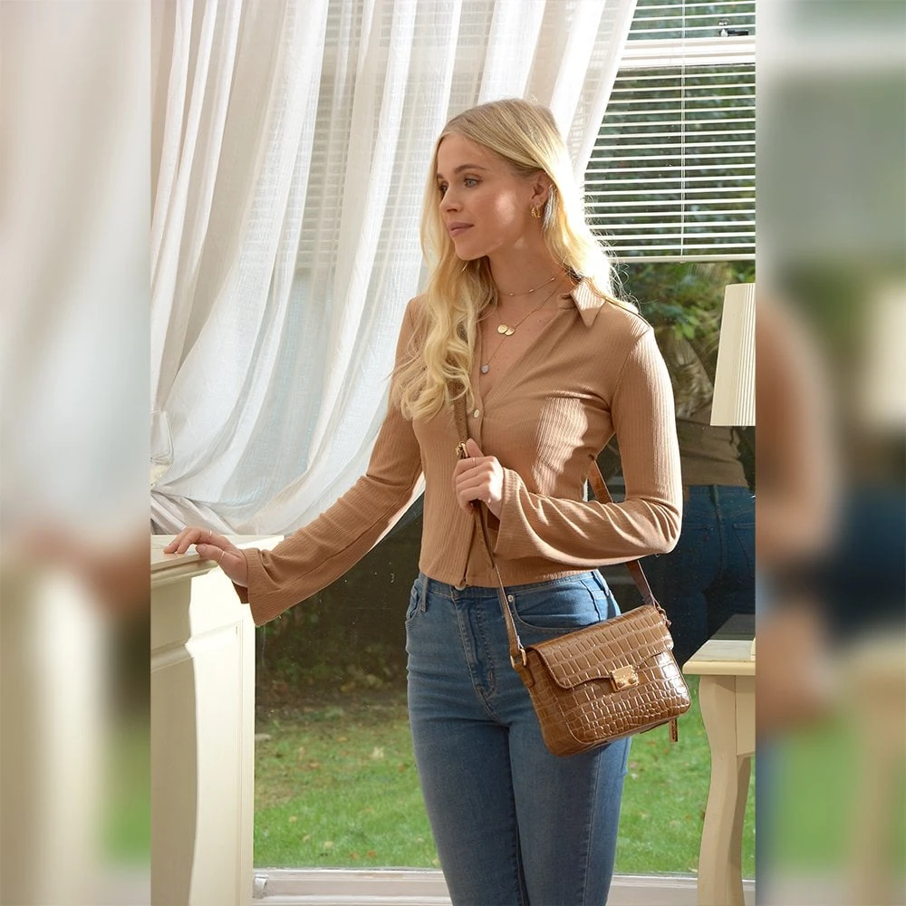 A luxurious chic cross body bag with croc print detailing. A new refined shape, with a slender adjustable shoulder strap, this leather piece will lend a stylish finish to your looks. Open to find a spacious inner compartment, an internal zip pocket and two slip pockets for all your essentials.
