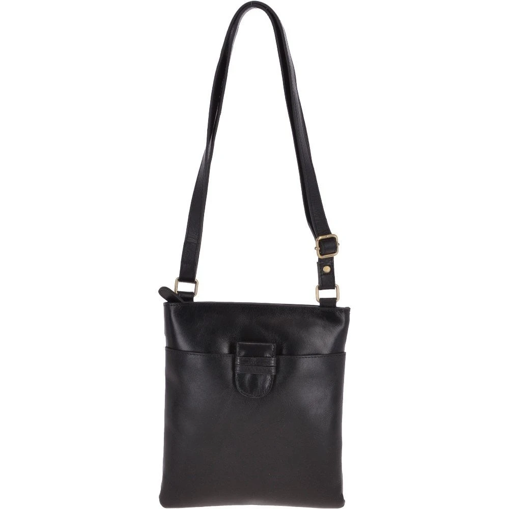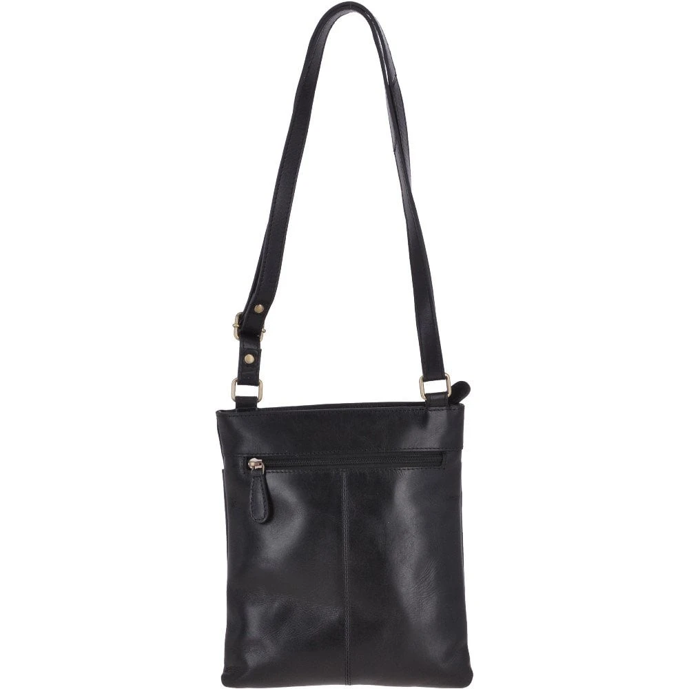 Small Zip Top Vegetable Tanned Leather Cross Body Bag Black : V-20