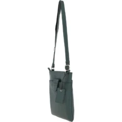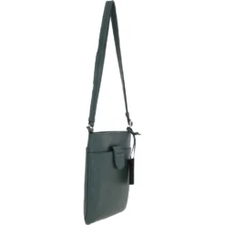 Womens Tab Small Zip Top Leather Cross Body Bag Bottle Green