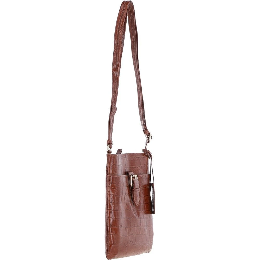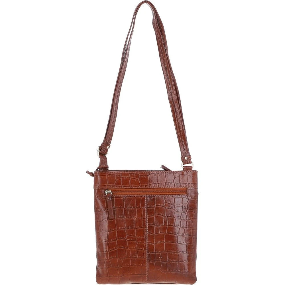 Tab Small Zip Top Leather Cross Body Bag Cognac/Croc