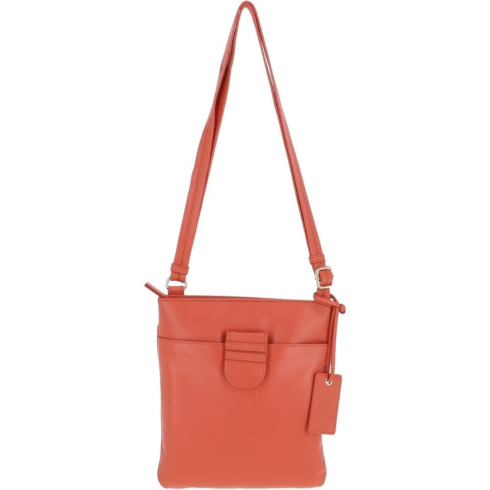 Womens Tab Small Zip Top Leather Cross Body Bag Orange