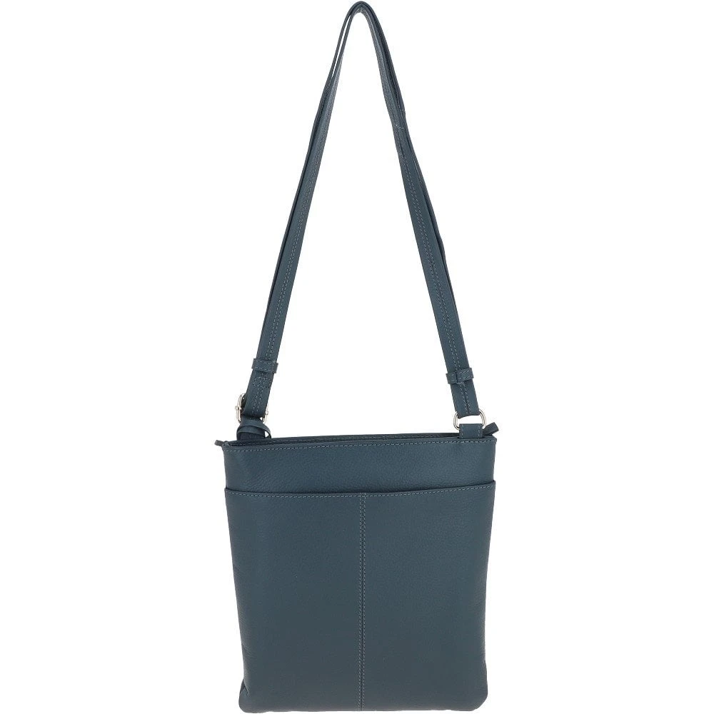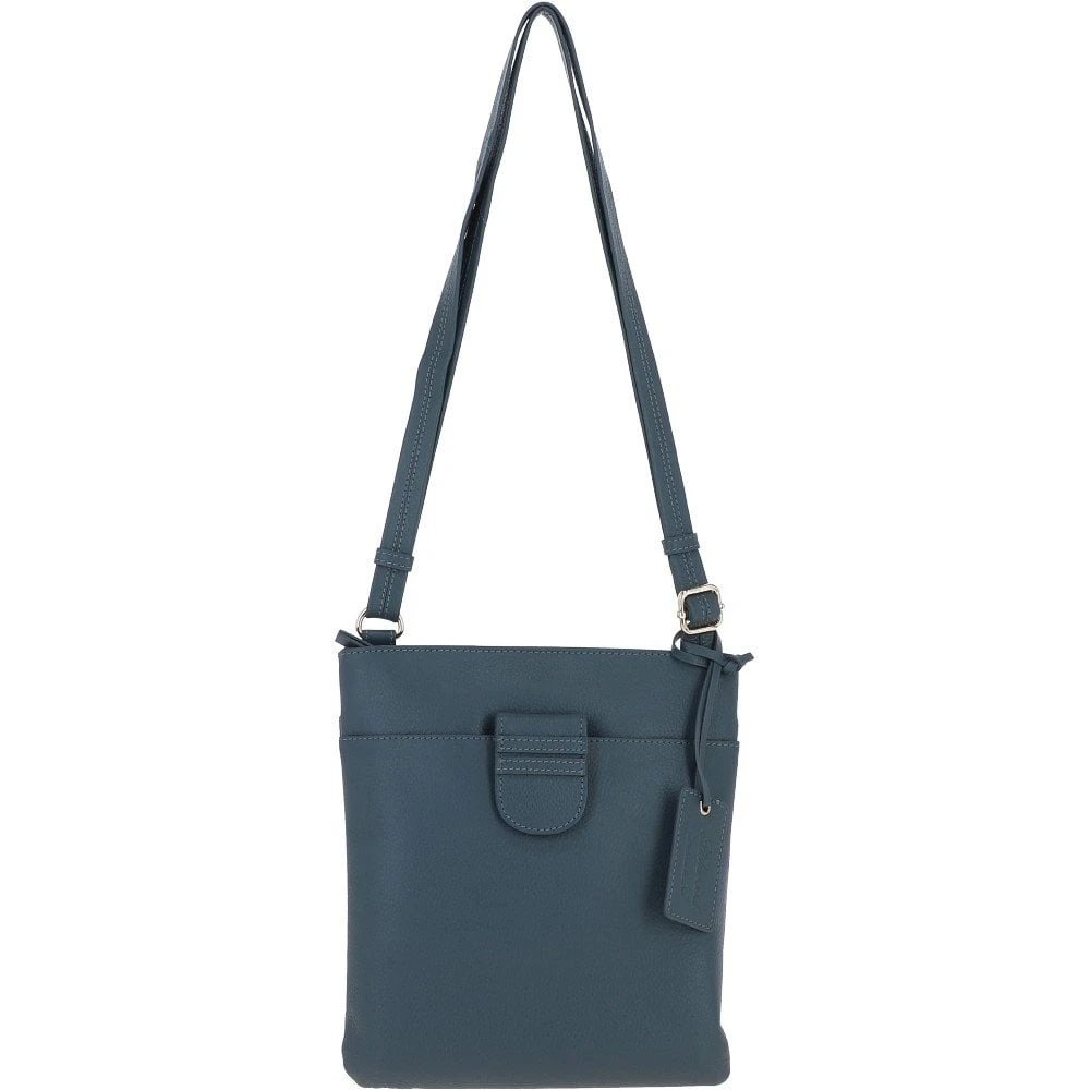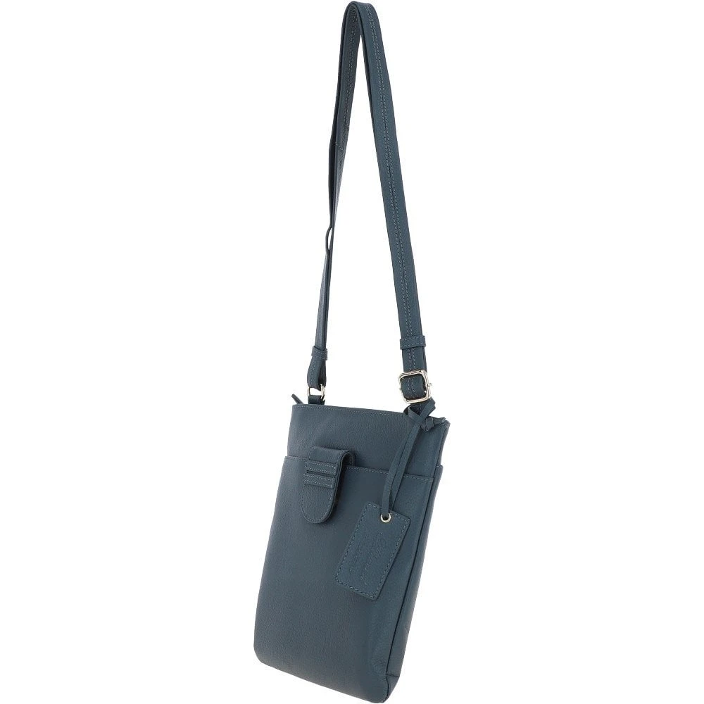 Womens Tab Small Zip Top Leather Cross Body Bag Slate Blue