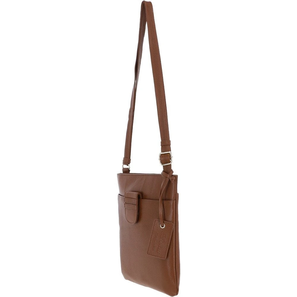 Womens Tab Small Zip Top Leather Cross Body Bag Tan
