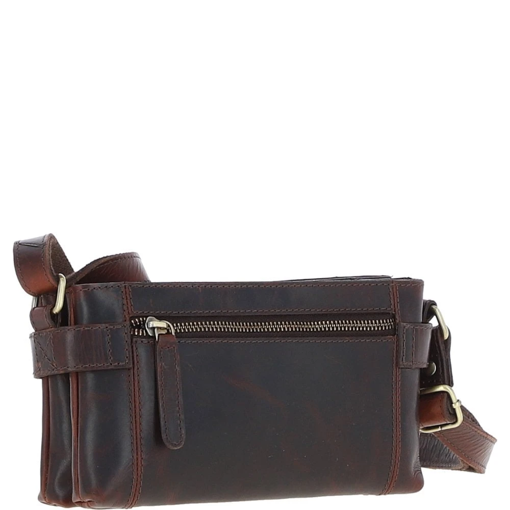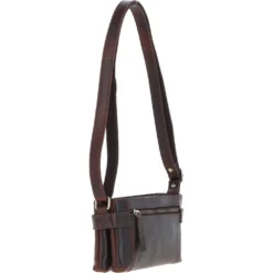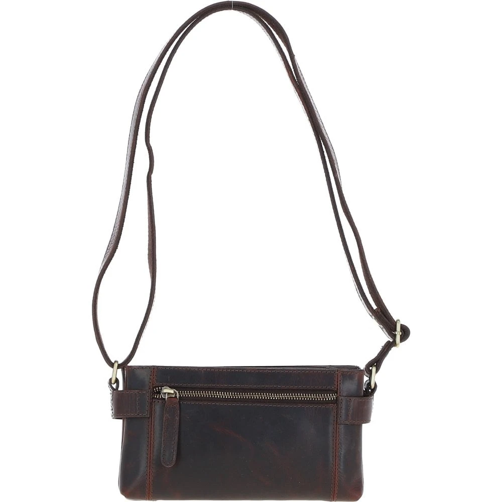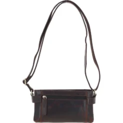 Two Section Zip Top Leather Crossbody Bag Brown: K-44