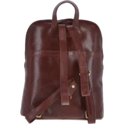 Expect a zip top closure. Two external pockets and a securtiy pocket. Open to find a zip pocket and slip pockets for all your essentials Handcrafted from beautiful veg tan leather this backpack has been masterfully crafted using traditional leather techniques and then coloured in chestnut.