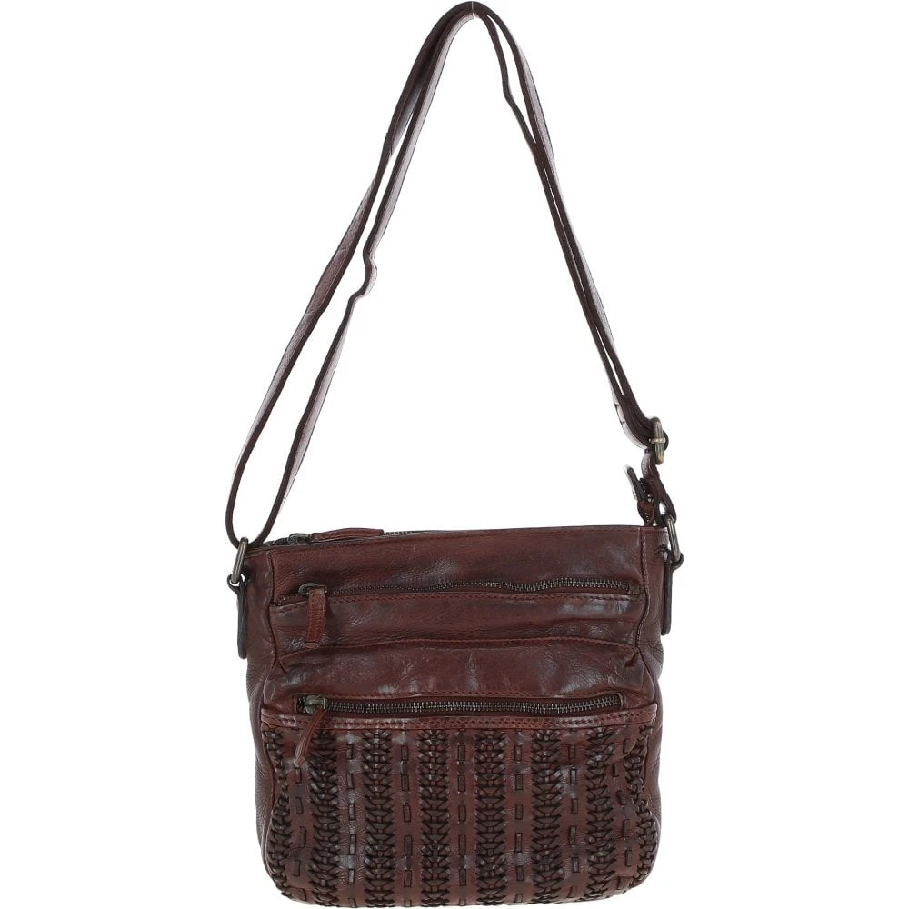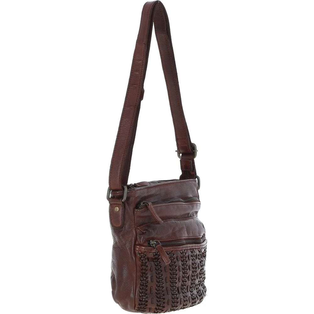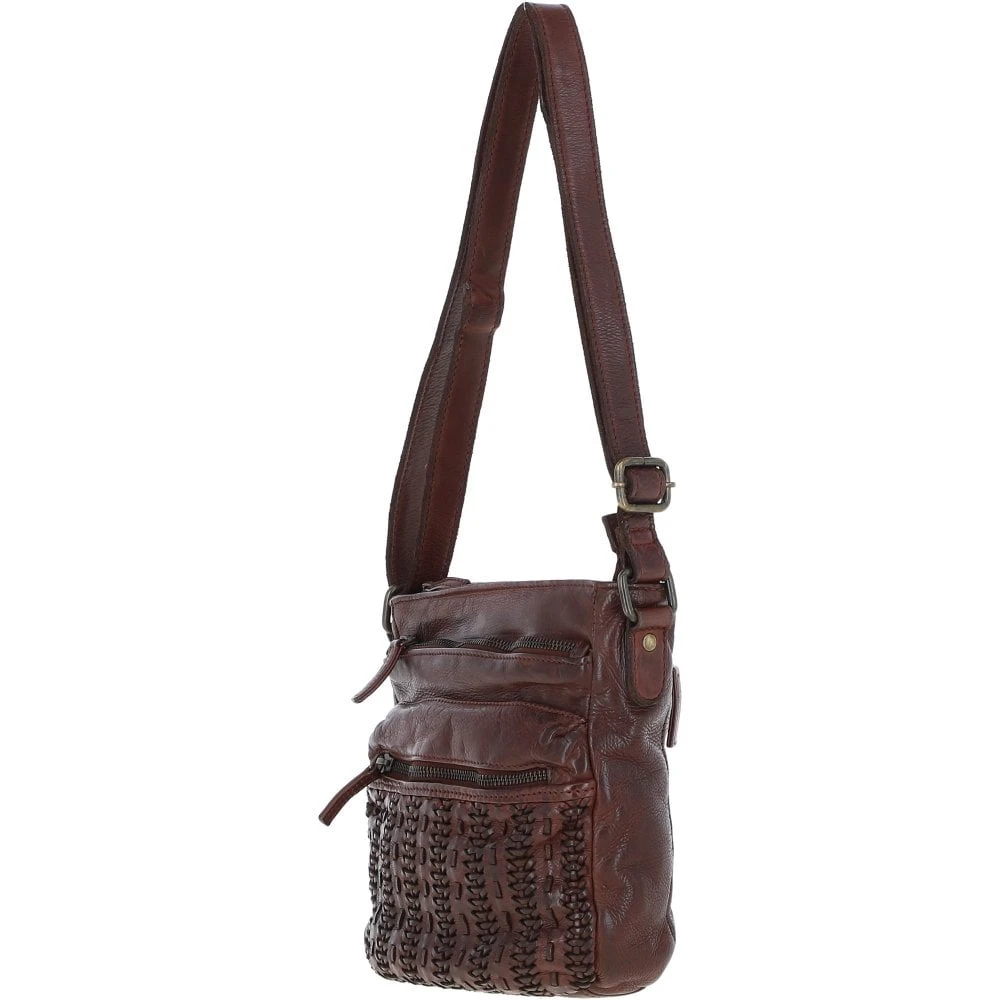 A luxurious vintage wash crossbody leather bag with a new refined shape. Expect a woven leather detailed front. Open to find a spacious inner compartment, an internal zip pocket and slip pockets for all your essentials.