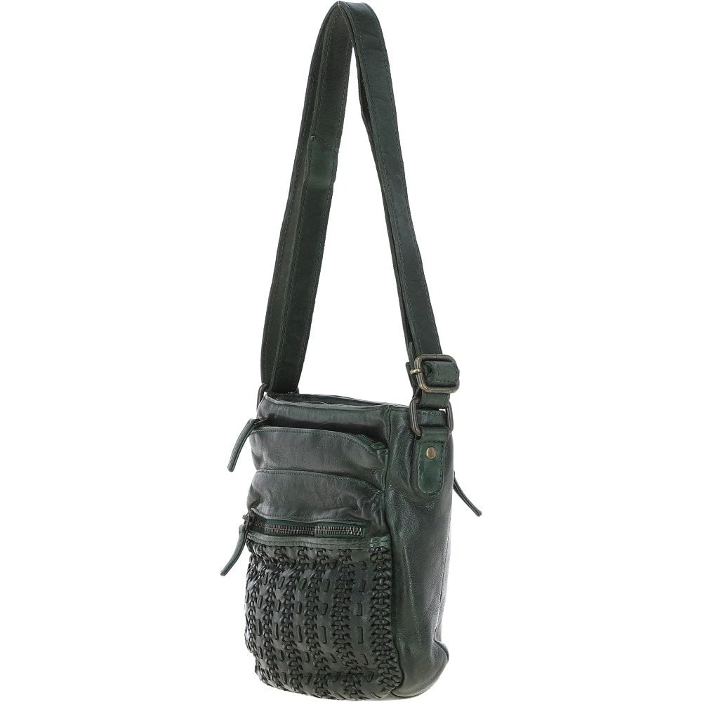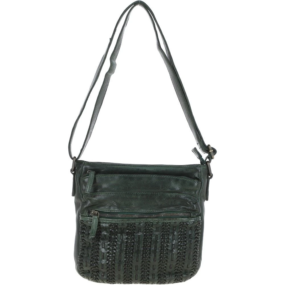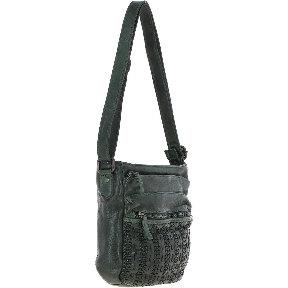 Vintage Woven Leather Crossbody Bag Green: D-93