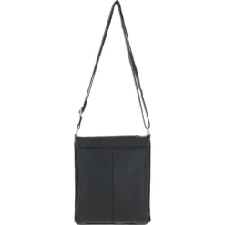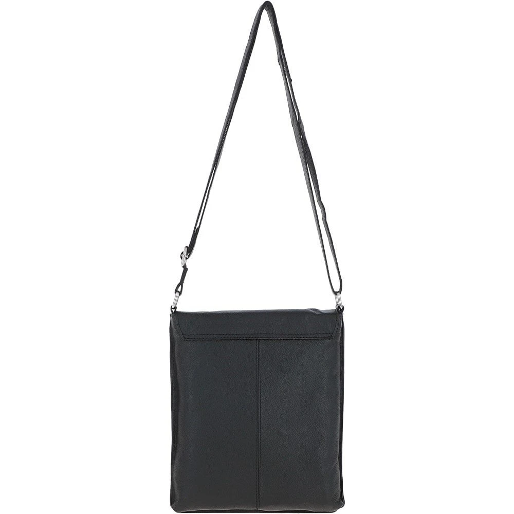 Womens Flap Over Leather Cross Body Bag Black: Ela 1495
