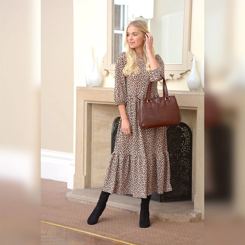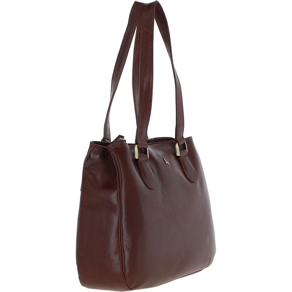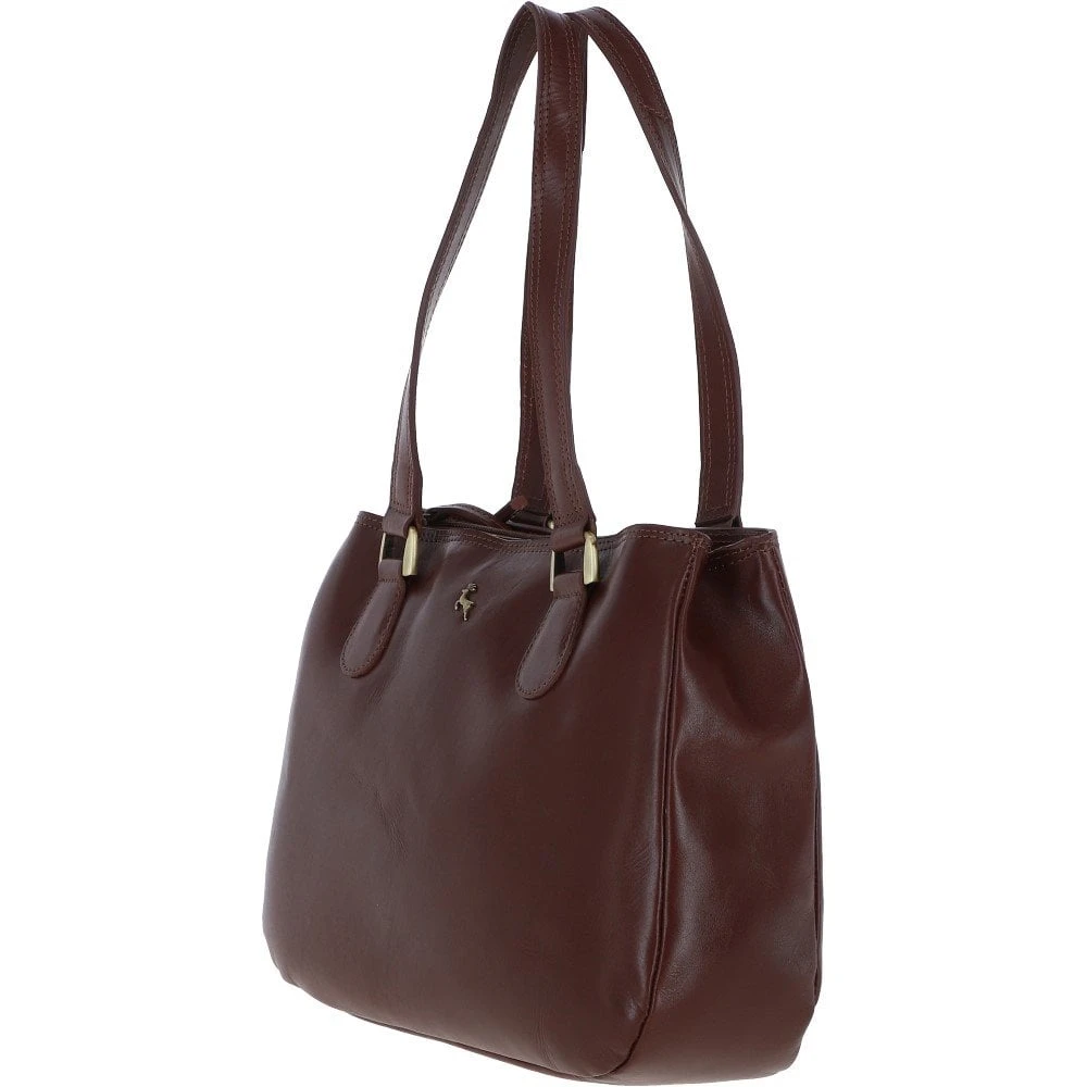 Ashwood Womens Three Section Leather Shoulder Bag Chestnut: V-31