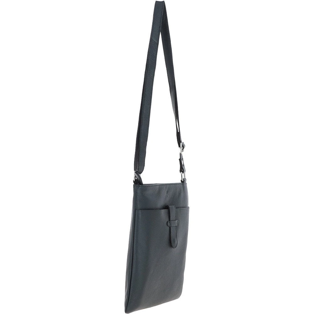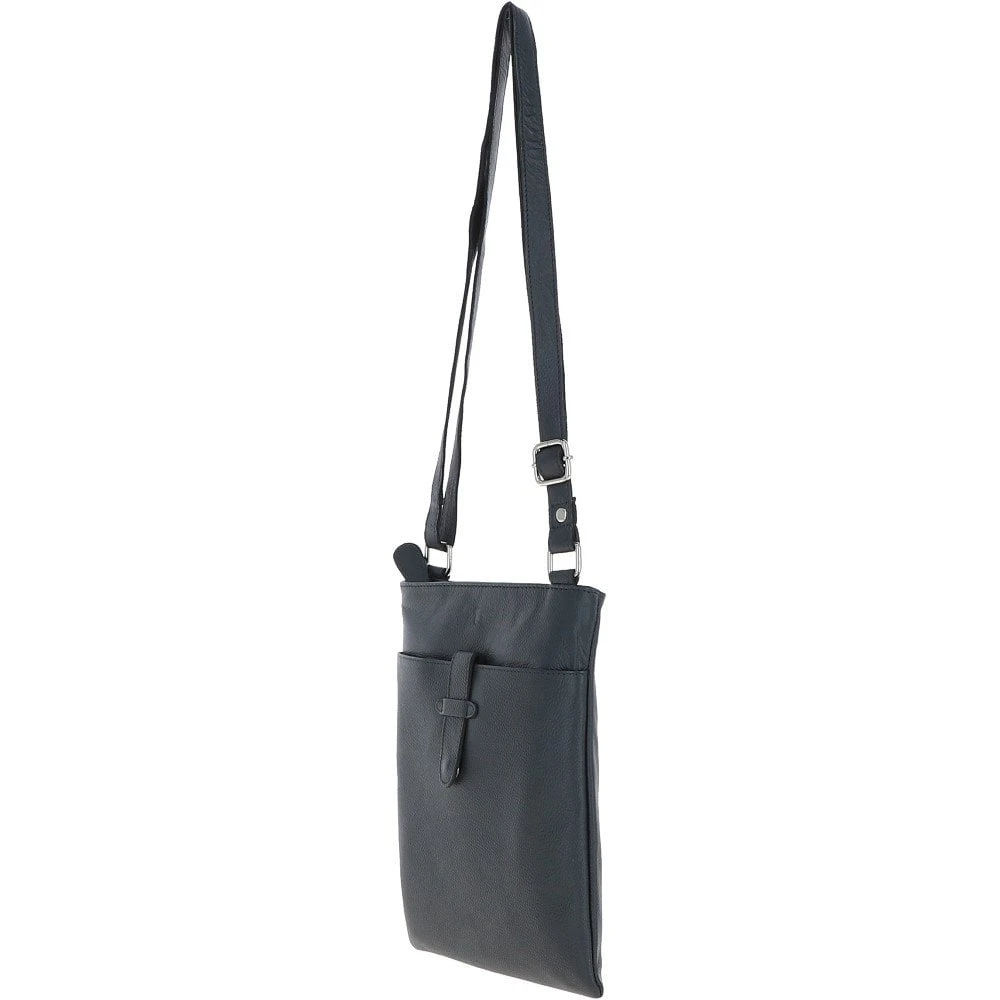 Zip Top Leather Cross Body Bag Navy: Ela 1498