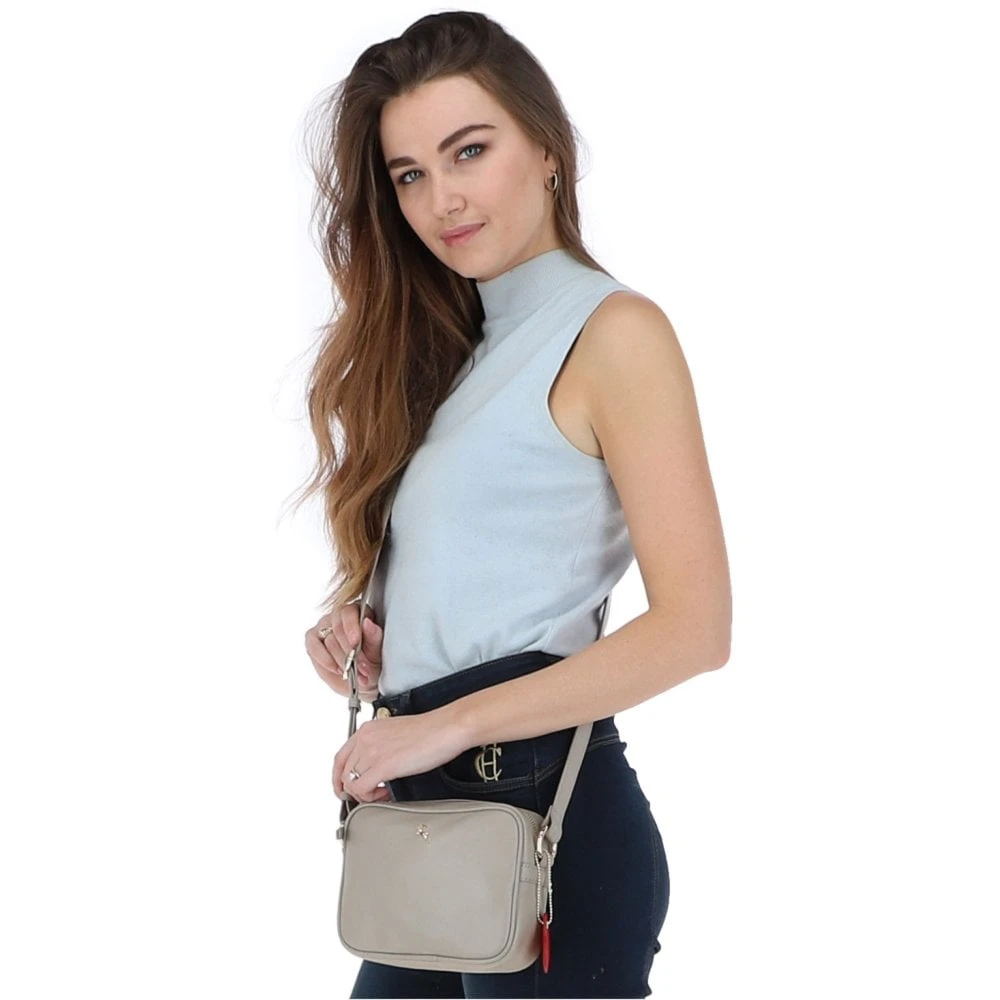 Ashwood Zip Top Leather Cross Body Bag Taupe: 63594